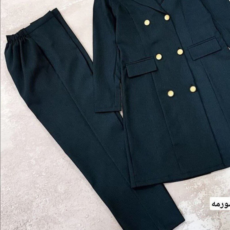 ست مانتو شلوار اداری پرشین دیپلمات رنگ سرمه ای دکمه سرمه ای یا طلایی درسه سایز