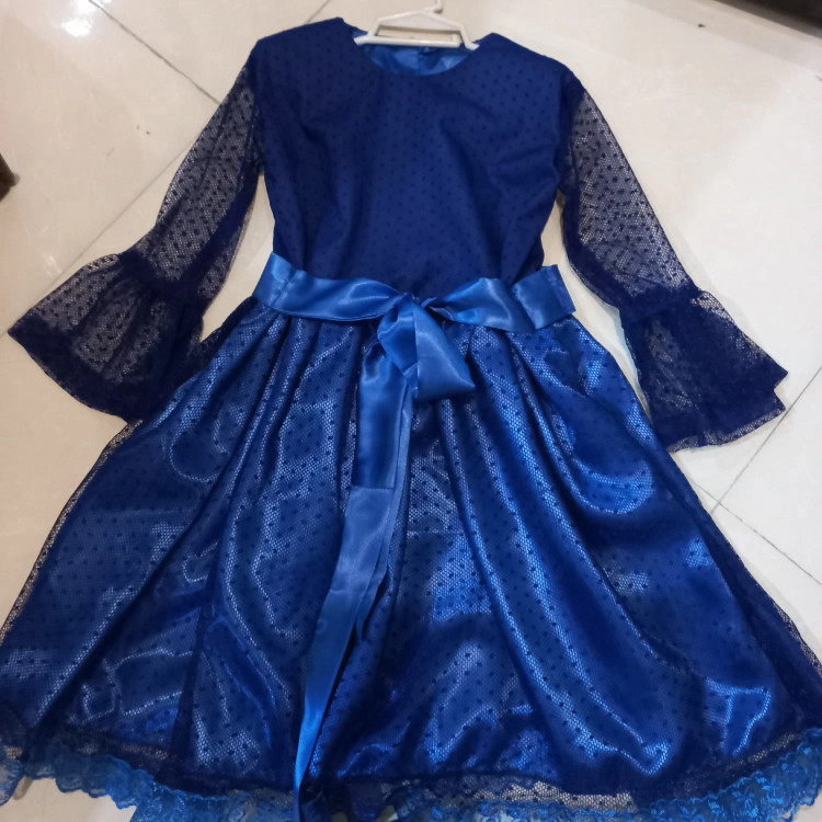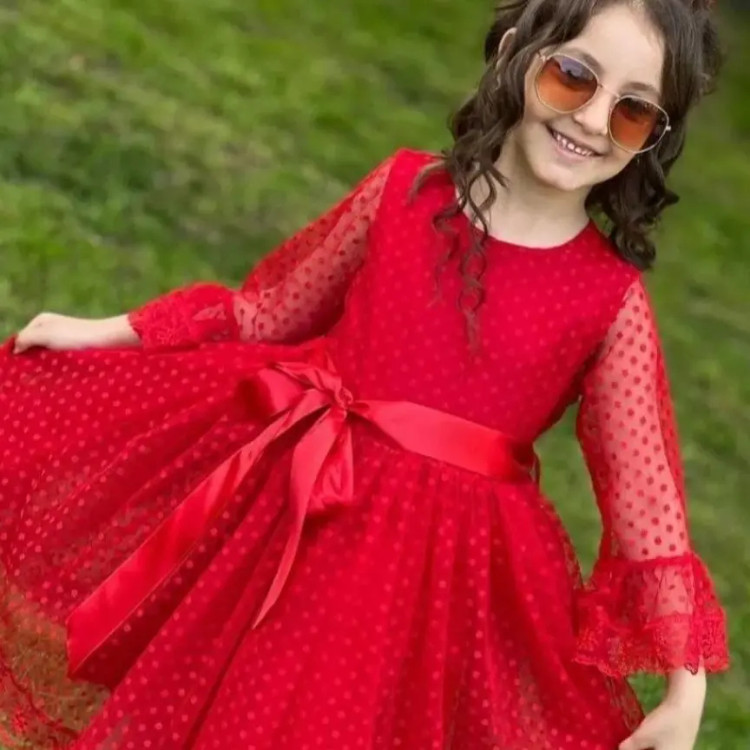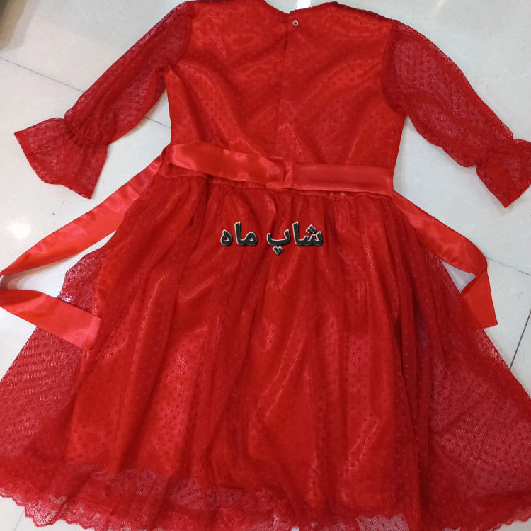 پیراهن مجلسی دخترانه 1 تا14 سال تور خالدار و استری