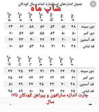قد پیراهن ۵۰ پهنا۲۸ قد پیراهن ۵۵ پهنا ۳۰ قد پیراهن ۶۰ پهنا ۳۲ 💜💜💜💜 ..................................... قد پیراهن ۶۵ پهنا ۳۴ قدپیراهن ۷۰ پهنا ۳۶ قدپیراهن ۷۵ پهنا ۳۸ 💜💜💜💜 ..................................... قد پیراهن ۸۰ پهنا ۴۰ قد پیراهن ۸۵ پهنا۴۲ قدپیراهن ۹۰پهنا۴۴ 💜💜💜 .......................................
