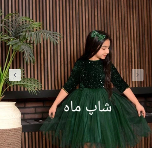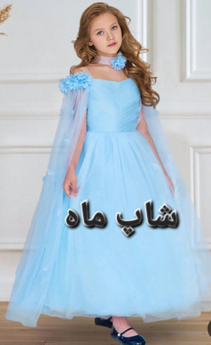 پیراهن مجلسی دخترانه 1 تا14 سال تور خالدار و استری